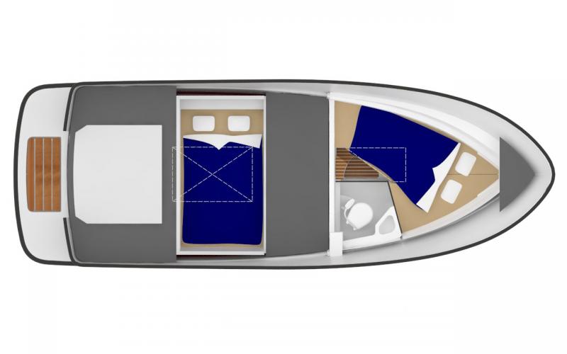 Het laden van grotere voorwerpen aan boord van het achterdek wordt gemakkelijk gemaakt door de dubbele hekrailpoorten. Het grote schuifluik in de kajuit is eenvoudig te bedienen wanneer u meer zon wilt hebben. De Sargo 25 is compact genoeg om volledig solo handelbaar te zijn.