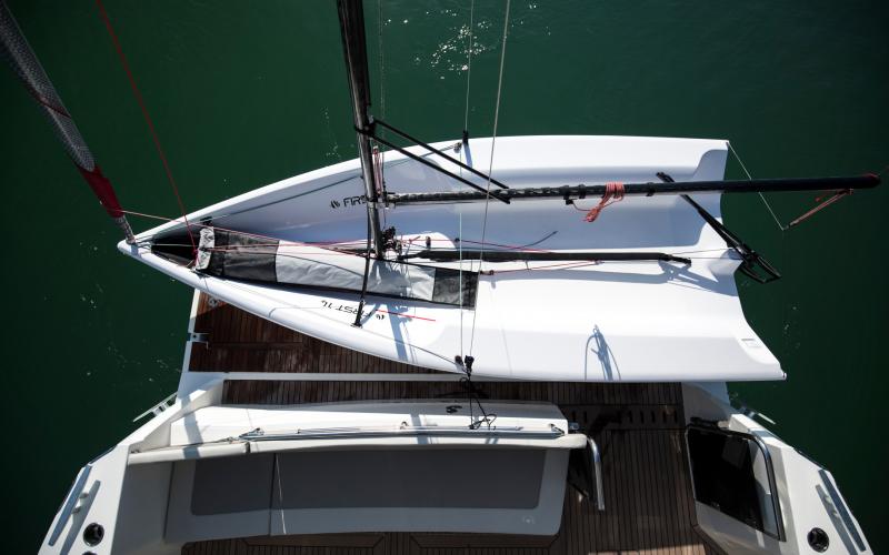 De First serie draait om snelheid, elegantie en comfort. Gestileerd door een aantal van de grote namen in het hedendaagse design, herdefinieert hun interieurconcept de norm voor een ontspannen en verfijnde zeilervaring. De materialen, het natuurlijke licht, de leefruimtes en de inrichting komen allemaal samen om een uitgesproken hedendaags gevoel te creëren.