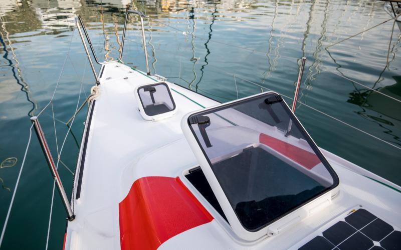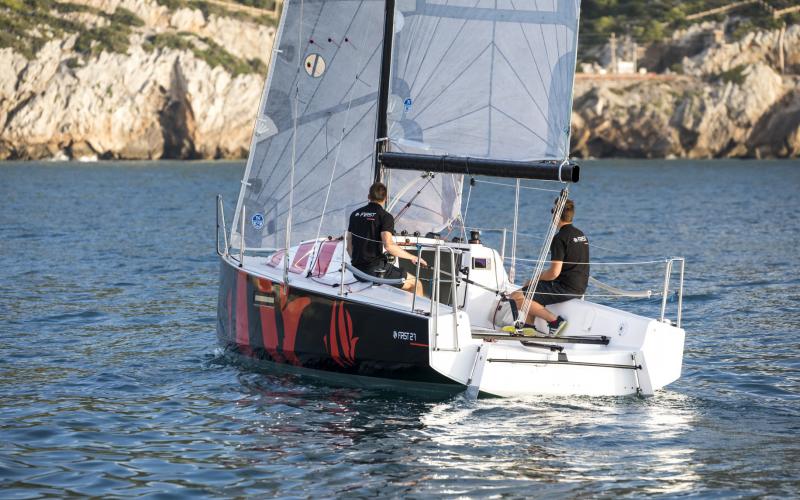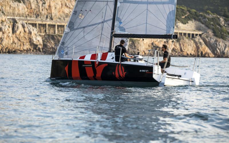 De First range doet geen enkele concessie op het gebied van veiligheid aan boord. De materiaalkeuze en productieprocessen zijn allemaal gebaseerd op de allernieuwste technologieën om kracht te combineren met een licht gewicht en ergonomische eenvoud. De spiegel, kuip, kuip, dek en indeling zijn zorgvuldig ontworpen voor veilig zeilen en maximale werkruimte voor de bemanning, terwijl de uitrusting en dek hardware de nadruk leggen op het gemak van zeilen en het hanteren van de boot.