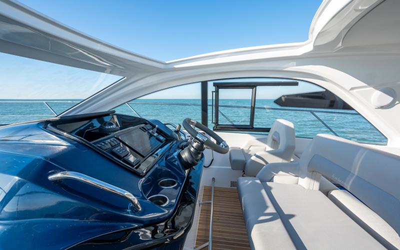 Met een centrale bestuurdersplaats, optimaal zicht naar voren door een ononderbroken voorraam en twee Volvo binnenboord motoren van 2X 300 pk of 2X 380 pk met hekaandrijving, is de Gran Turismo 41 sterk gericht op plezier en snelheidsbeleving.