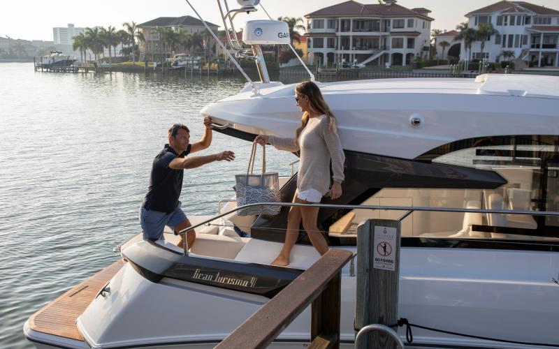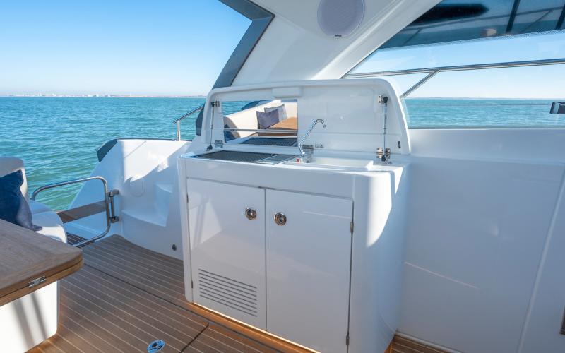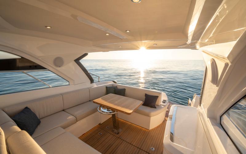 Met haar sportieve romp en slanke lijnen straalt de Gran Turismo 41 zowel snelheid als elegantie uit. De Gran Turismo 41 is ontworpen om indruk op u te maken, maar ze is ook gemaakt met aandacht voor uw gezelschap. Alles aan boord is ontworpen om het leven gemakkelijker en aangenamer te maken: veilige verplaatsing rond de boot, een zeer toegankelijke U-vormige salon, een functionele buitenkeuken, en comfortabele ontspanningsruimte.