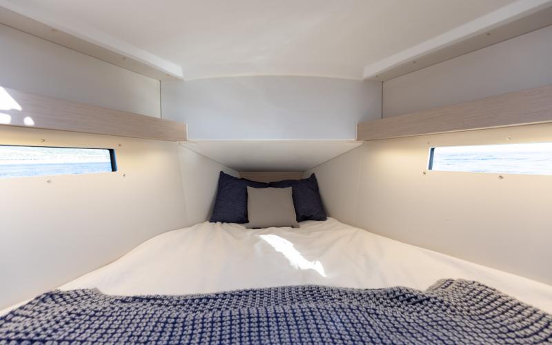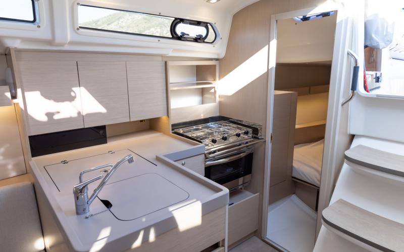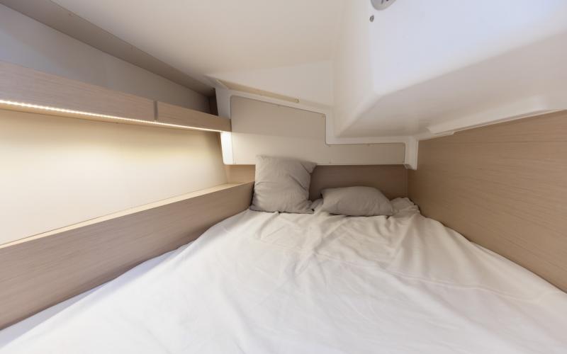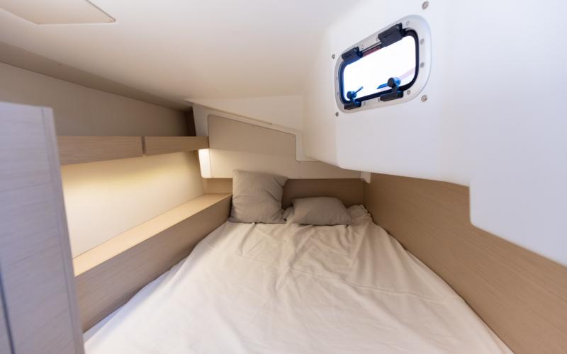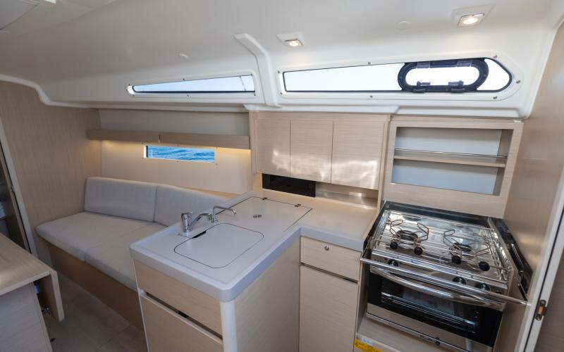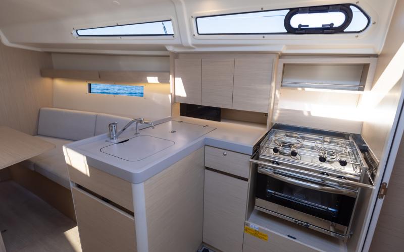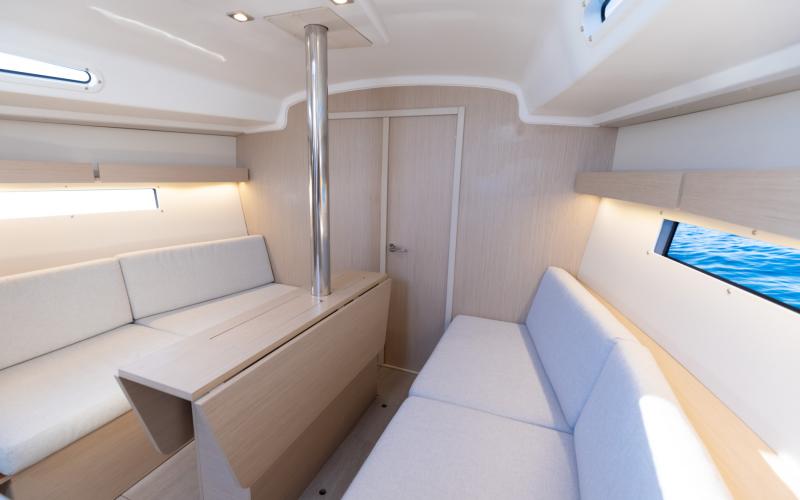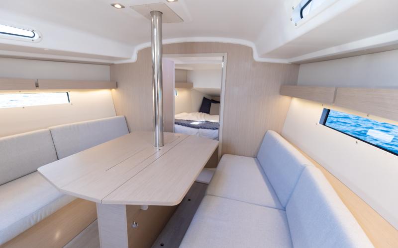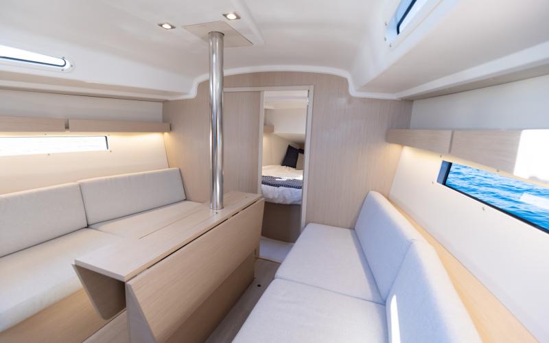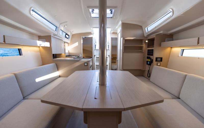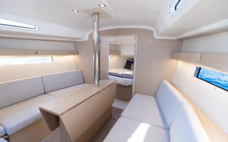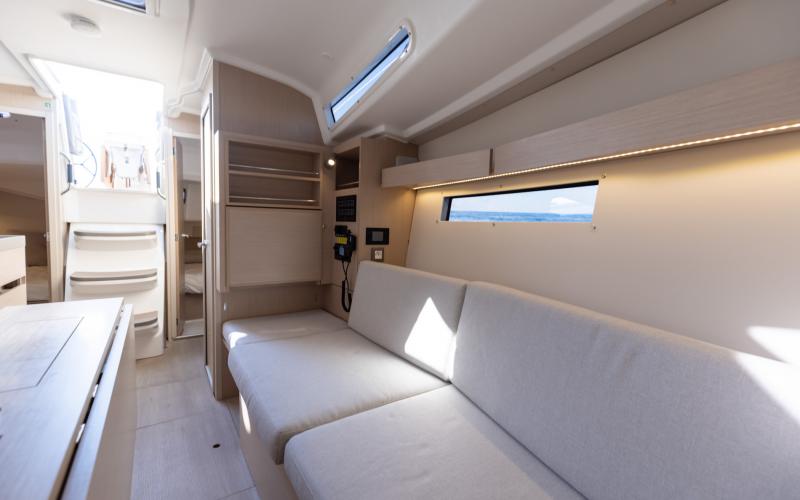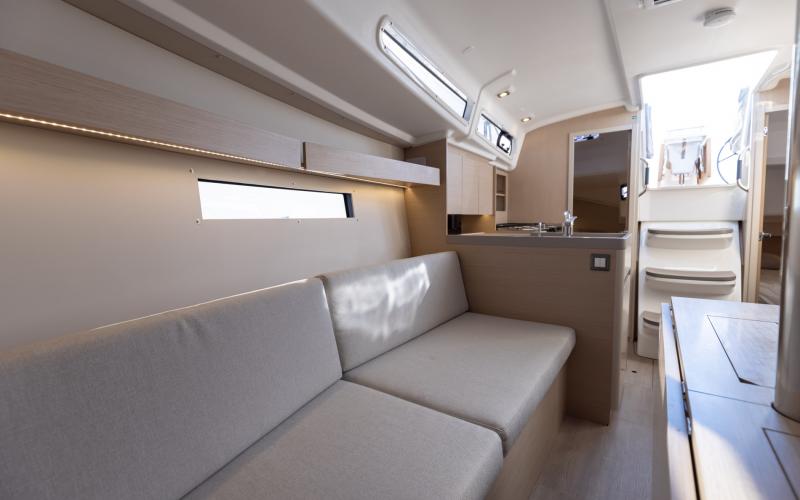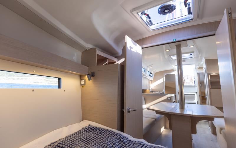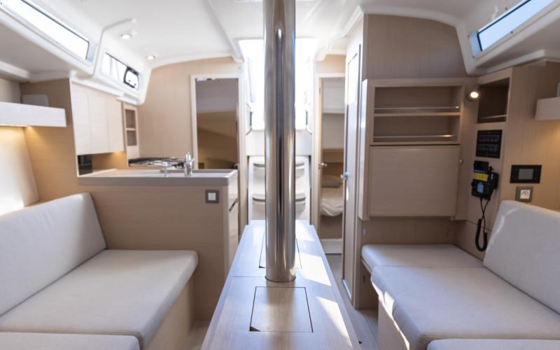 Binnen in de boot zijn er 2 of 3 tweepersoonshutten en een toiletruimte. Welke versie u ook kiest, het interieur van de boot is licht en ruimtelijk. De boot heeft vier dekluiken, vier patrijspoorten in de romp en lange ramen in de kajuit, zodat u vanuit de salon van de Oceanis optimaal van het cruisen kunt genieten.