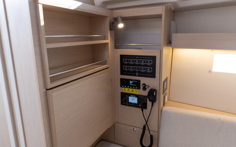 De Nauta ontwerpers hebben een chique, eigentijds interieur gecreëerd, in een elegante walnoot of licht eiken afwerking. De dekluiken en meerdere patrijspoorten in romp en opbouw brengen natuurlijk licht in de boot en zorgen voor een uitstekende ventilatie. In de salon biedt de slim ontworpen kaartentafel met neerklapbare tafelbladen plaats aan twee extra eenpersoonsbedden.