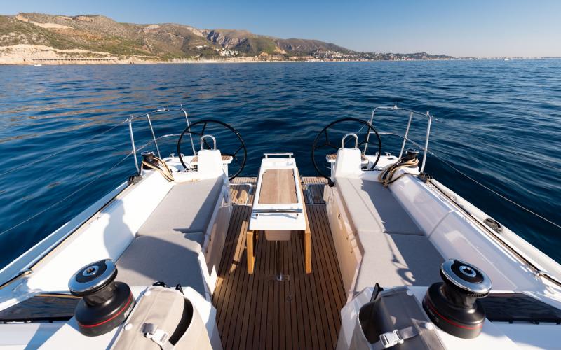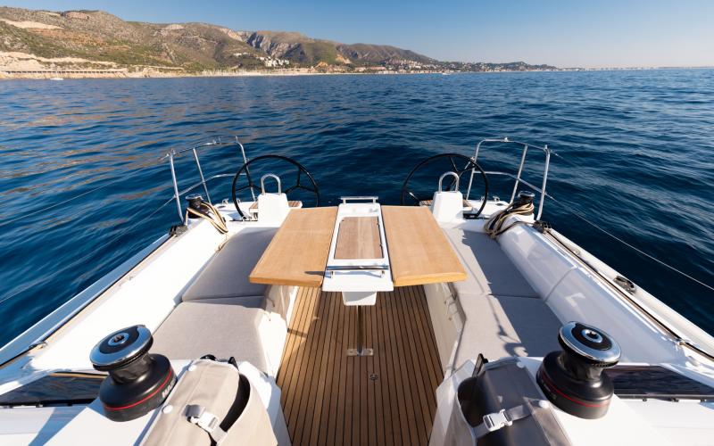 De lay-out van het dek is opnieuw ontworpen om een maximum aan comfort en veiligheid te verzekeren bij het bewegen rond de boot, aan het roer en voor het leven aan boord wanneer men voor anker ligt. De vallijnen en het lijnen van het furlsysteem bevinden zich voor de kuip, terwijl er aan elke kant een lier is voor de stuurman/-vrouw om de voorzeilen te trimmen. Het resultaat is een overzichtelijke cockpit, ideaal voor ontspanning, met gemakkelijke toegang tot het achterste zwemplatform.