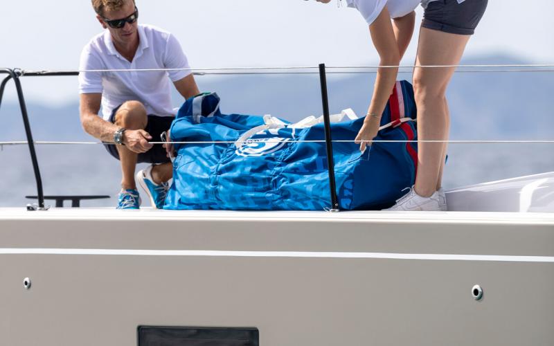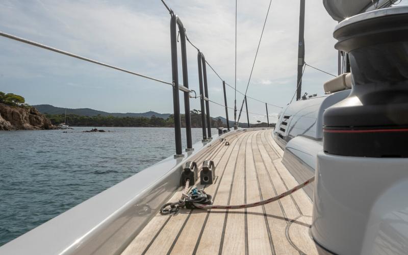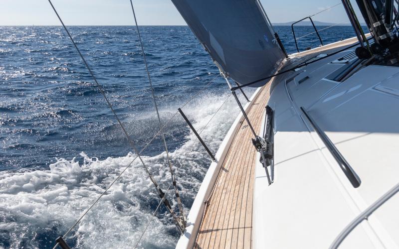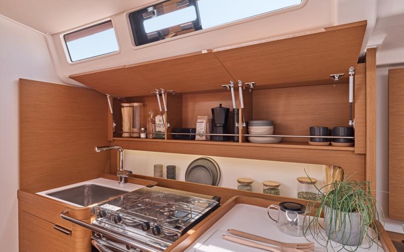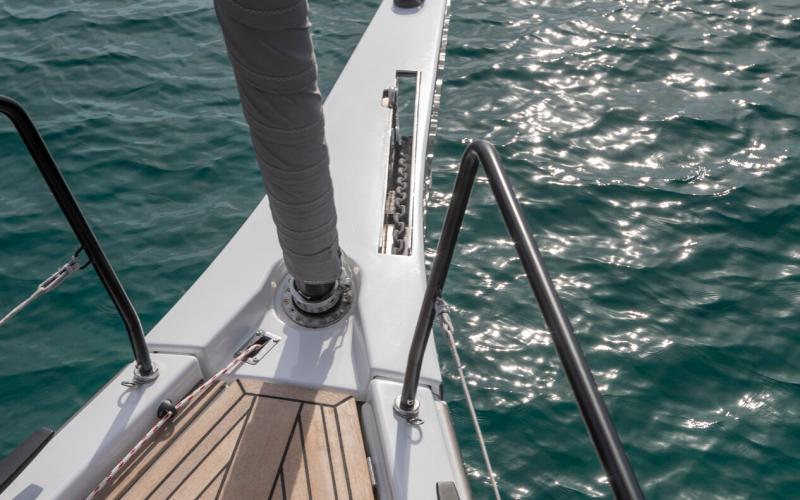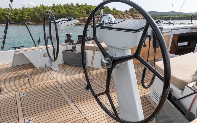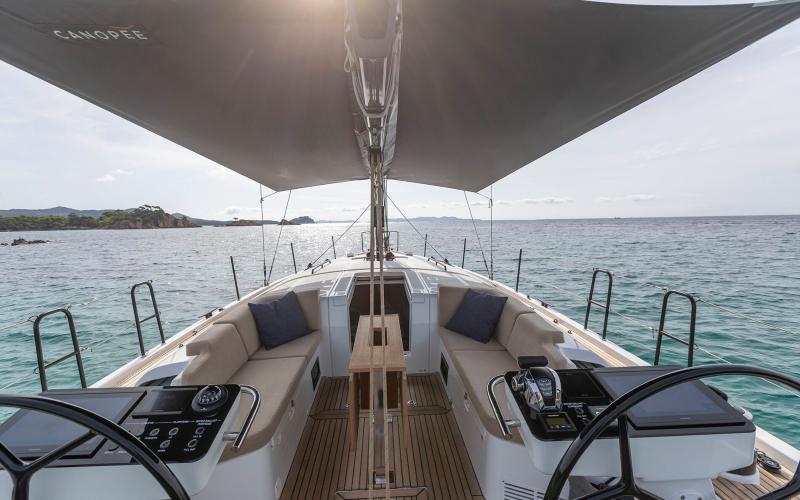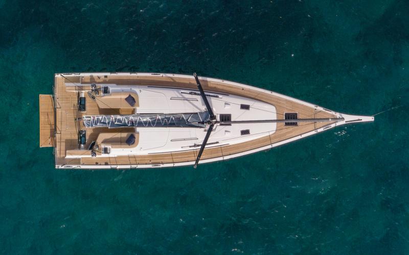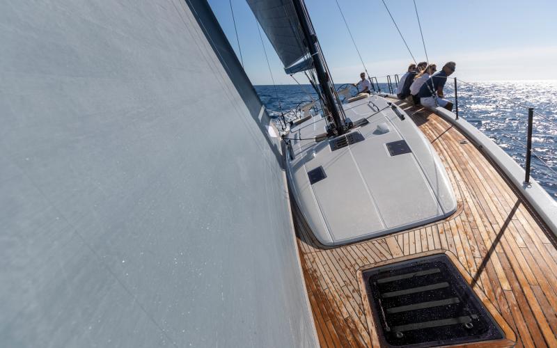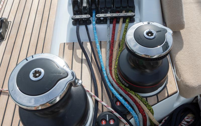 In de FIRST 44 uitvoering is de kuip bijzonder comfortabel met een fraaie kuiptafel en gelijkvloerse toegang tot de brede gangboorden. Vier lieren, een centraal geplaatst grootschootblok en een mast die verder naar achteren is geplaatst maximaliseren het potentieel van het moderne zeilplan, gekenmerkt door een kleiner grootzeil en royaal bemeten voorzeilen.