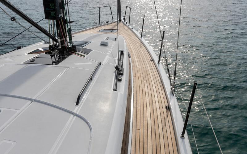 Bij de FIRST 44 PERFORMANCE is de ergonomie van het dek grondig bestudeerd en ontwikkeld met het oog op wedstrijden met een volledige bemanning. Waaronder een upgrade van de dek hardware en zeil trimsystemen, deze zijn volledig afgestemd op wedstrijden. Daarnaast zijn er schuimrubberen anti-slip oppervlakken die het teakhout op de kuipvloer vervangen, 6 doordacht geplaatste trimlieren en een grootschootoverloop.