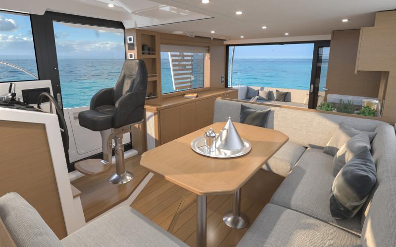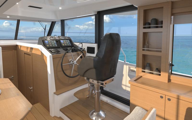 De stuurstand met aangrenzende zijdeur die leidt naar de stuurboord midscheeps cleat & bulwark gate zorgt voor gemakkelijk aanleggen en circulatie. De stuurstand heeft ruimte voor 2 x 12" Raymarine MFD schermen en het Beneteau Ship Control systeem. Daarnaast kunnen een achterdek docking camera, achtersteven docking lichten en het Cummins geïntegreerde joystick systeem worden geïntegreerd voor een stress-vrije docking ervaring.