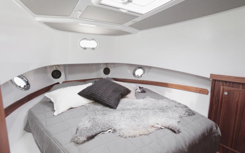 Naast een riante salon met L-bank en draaibare stuurmansstoelen, biedt de 36-voeter ook 2 aparte slaaphutten met 2 toiletten en een separate douche. De kombuis heeft een kooktoestel en spoelbak met warm en koud water en 80 liter koelkast. Standaard is er een 5Kw kachel aan boord, ideaal voor tijdens de koudere dagen.